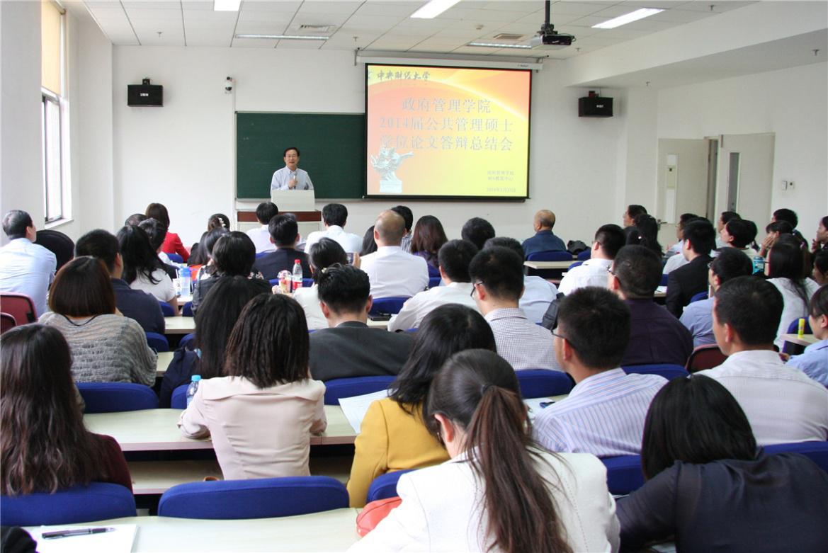 英国365公司2014届硕士研究生毕业论文答辩于2014年5月13、14日在中财大厦三层举行。共有114名毕业生参加此次答辩,其中公共管理专业硕士83名,行政管理学术硕士20名,教育经济与管理学术硕士11名。中国人民大学学术委员会副主任、著名经济学家胡乃武教授,国家行政学院中国经济研究中心主任王健教授、北京大学首都发展研究院院长沈体雁教授、清华大学公共管理学院黄翠教授、北京教育学院王玉崑教授,我院赵景华院长、徐焕东教授、施青军教授、杨燕英教授、栗玉香教授等18位教师参与论文的评阅和答辩工作。