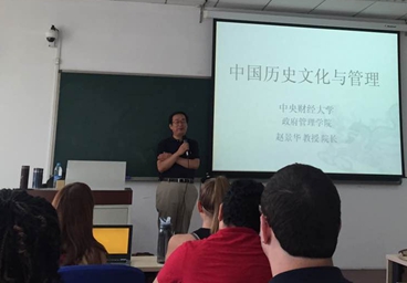 我院院长赵景华教授为研修班进行了开班第一讲。赵教授以中华五千年文明史为主线,从三皇五帝的华夏传说讲到近现代中国的建立,用丰富的历史资料和珍贵的历史文物深入浅出地向研修班成员展示了古老中国独特的历史文化,由此揭示了东方管理思想诞生的社会历史条件,为同学们理解中国文化、中国管理思想厘清了历史的发展脉络。赵教授精彩的讲解赢得了同学们的阵阵惊叹与掌声,尤其激起了美国同学对东方文化的极大兴趣。休斯敦大学商学院副院长王吉府教授主讲了西方现代领导管理的前沿理论,王教授采用了行为科学的教学方法,通过案例教学、性格测评等方式,将前沿管理理论寓于通俗的管理实际,加深了同学们对管理学最新理论的认识和理解。三株集团董事长吴炳新先生讲授了消费综合理论和经济发展与领导管理理论,将企业管理实践与学术研究相结合,提出了一套认识消费行为、经济运行和社会发展的新方法。山东社会科学院高级研究员李鑫生教授为研修班学员讲授了中国古代文化中管子、孔子和老子的领导管理思想。此外,美国埃尔泰克公司天津区经理与同学分享了在中国做生意的实践经历。美国驻华大使馆也通过讲座和大使交流的方式为同学们分析了中美关系。此次研修班课程内容涵盖了中国历史与文化、中外管理理论对比、领导管理前沿理论等多个领域,采取了课堂讲授、专题讲座、自主学习、团队讨论和总结汇报等多种授课形式。课程之余,研修班师生还参观了故宫、颐和园、泰山、孔府等名胜古迹,考察了天津的美国企业和济南的三株集团工厂,访问了美国驻华大使馆等。