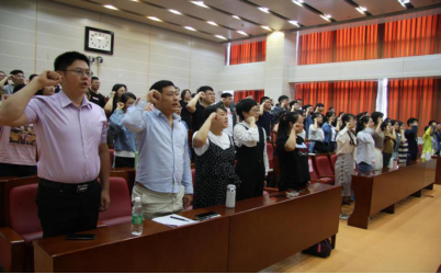 开学典礼最后一个环节为新生入学宣誓,由2019级学术型硕士研究生许雄刚领誓:“谨记中财校训,忠于祖国,服务人民,治学修身,尊师重道,求真务实,开拓创新,勇于担当,追求卓越,以公共管理之学识,成经世济民之良才,以正气浩然上善若水之精神,成中华复兴之伟业”。庄严的宣誓,郑重的誓词,久久回荡在学生心中。最后,参与开学典礼的全体师生在学术会堂前合影留念。