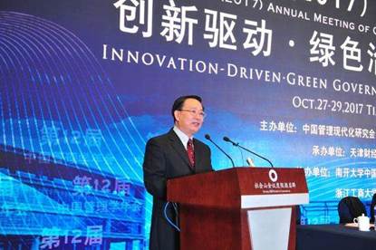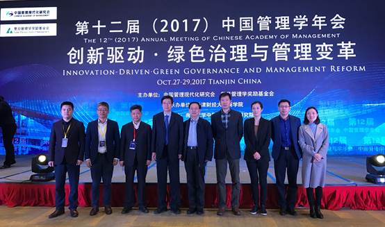 2017年10月27-29日,中国管理学领域规模最大、层次最高的综合性学术会议,第十二届(2017年)中国管理学年会在天津社会山国际会议中心隆重召开。本届年会由中国管理现代化研究会与复旦管理学奖励基金会联合主办,天津财经大学商学院承办。来自北京大学、清华大学、中国科学院、中国社会科学院等200余家知名高校与研究机构的千余位国内外与会嘉宾、学者围绕“创新驱动·绿色治理与管理变革”这一主题,开展了跨学科、跨行业、跨地区的学术研讨。我院院长赵景华教授作为中国管理现代化研究会秘书长主持开幕式。