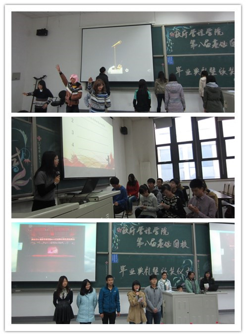 之后是精彩的部门展示环节。展示由“如何做好学生干部”的主题表演和部门章程展示两部分组成。其中,采编部创意不穷,活泼有趣的三幕情景剧突出了“沟通,奉献,尽责”的重要性;学术实践部的诗朗诵典雅灵秀,“学术启文明,实践出真知”是他们的宣言;文体部的小品“WE ARE·如何当好学生干部?”诙谐生动,青春活泼;青协成员妙语连珠,精彩纷呈的模拟更是形式新颖……参加基础团校活动的所有同学都用认真负责的态度诠释着他们的团队精神及他们作为一名学生干部所具有的优秀品质。