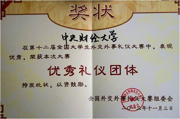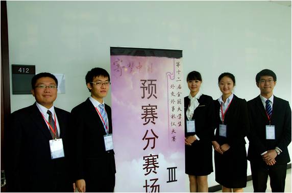 11月1日,由外交学院举办的第十二届全国大学生外交外事礼仪大赛正式拉开帷幕,我校代表队参赛。代表队由社会发展学院学生会副主席刘哲担任领队,四名参赛选手是分别是商学院的苏慧青、孙嘉宁以及英国365公司的宋亦明和李航。四位同学在10月23日结束的英国上市公司365第四届礼仪大赛暨第十二届全国大学生外交外事礼仪大赛英国上市公司365校内选拔赛中分别获得了“礼仪之星”和“风采之星”的称号。