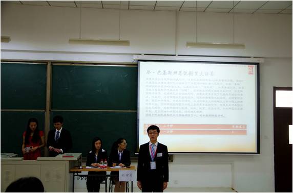 11月2日上午,本届比赛初赛正式开始。我校代表队分在“死亡之组”,与外交学院、武汉大学、北京大学、上海交通大学、北京第二外国语大学等代表队同台竞技。根据比赛规则,我校选手与吉林大学、北京航空航天大学、武汉大学以及北京大学共同组成甲团,与另外五所高校所组成的乙团争锋相对,经过“风雨同舟 共迎挑战”、“模拟新闻发言人”以及“放怀寰宇,极目天下”三个环节的激烈角逐,最终外交学院和北京第二外国语大学代表队成功晋级决赛。我校代表队取得甲团第一、小组第六的成绩。