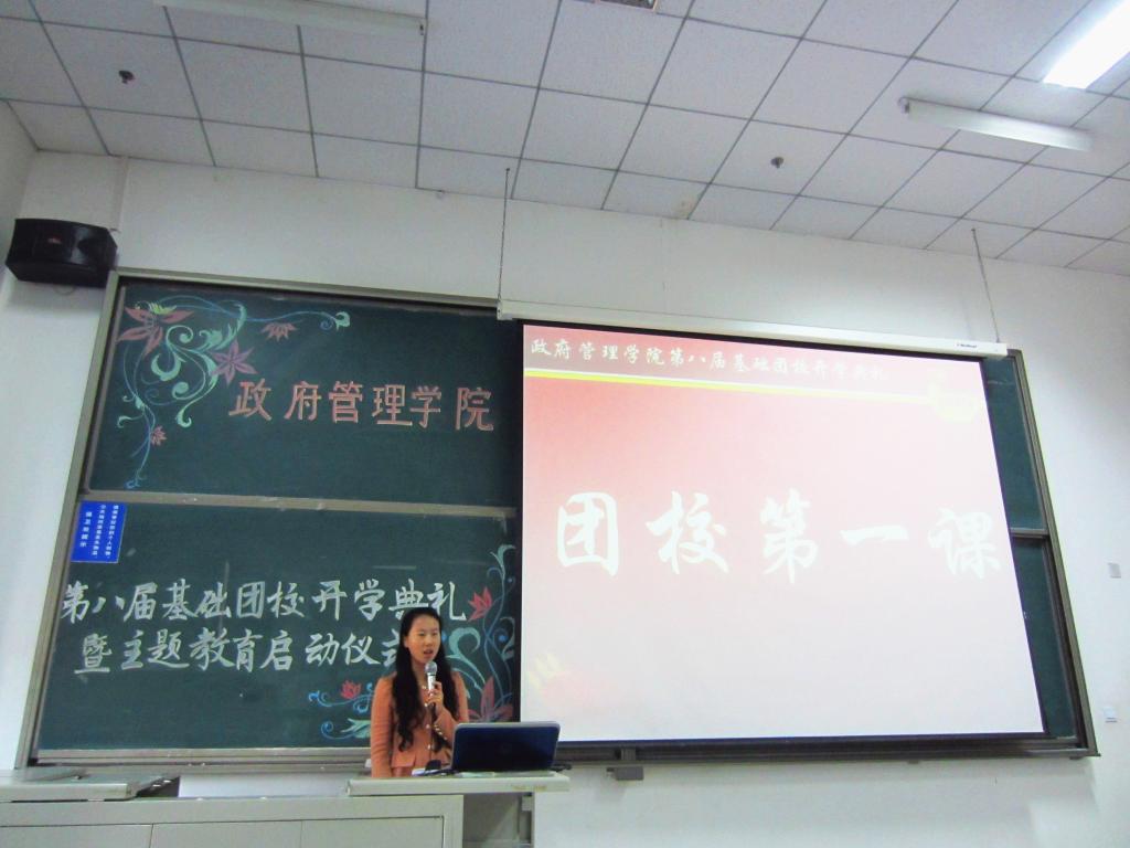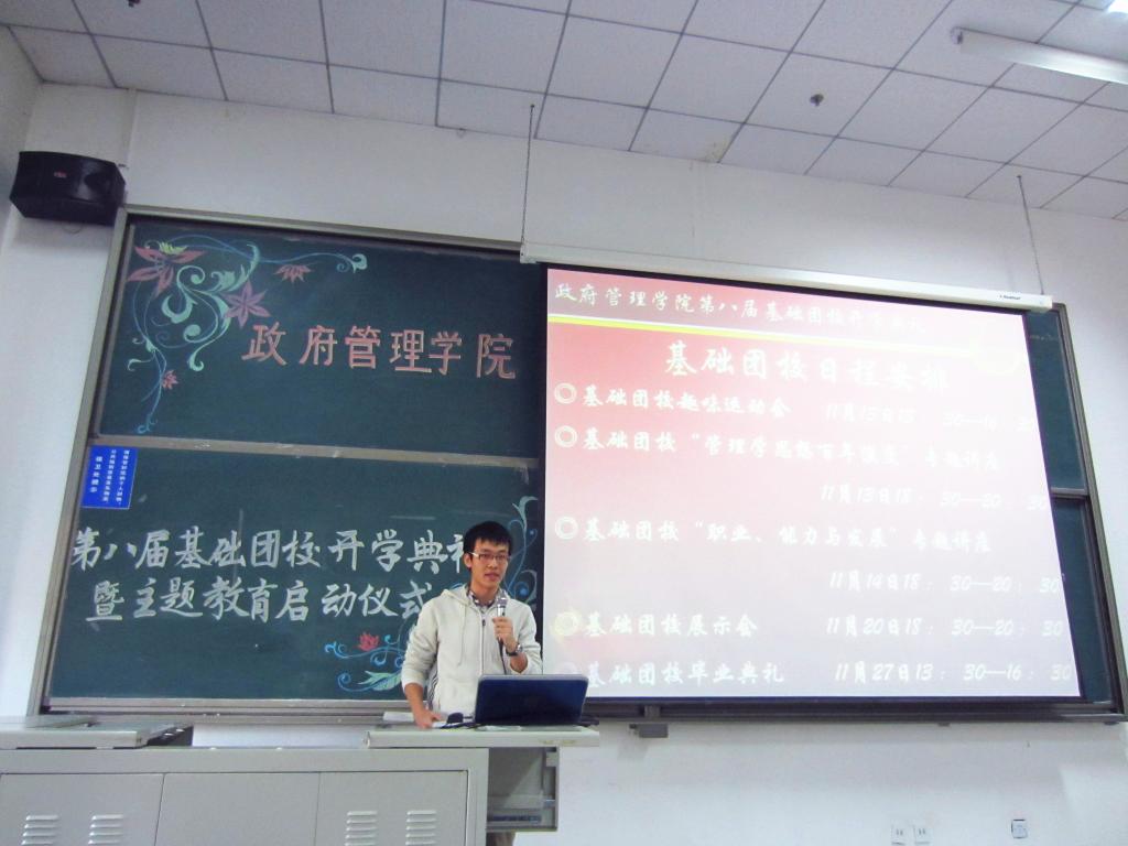 活动第二个环节是由组织部部长宋亦明从活动概述,日程安排,人员分组情况,基础团校组织机构四个方面对基础团校的安排及课程进行简要介绍,使在场同学再一次明确了参加基础团校的意义所在。