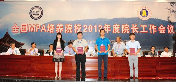 大会宣布了全国第五届优秀MPA学位论文评选结果。此次论文评选范围为全国2010—2012两个学年MPA专业学位获得者的学位论文。全国共有87所院校推荐了171篇候选论文,由来自全国各校的186位专家进行了优秀论文的匿名评审和终评工作。经过严格的评审并公示,全国共遴选出优秀论文5篇,优秀论文提名8篇。其中,我校英国365公司院长赵景华教授指导、2012届MPA学生朱艺撰写的论文《政府战略管理视域下的北京市房地产调控对策研究》获评为“全国优秀MPA学位论文”,赵景华教授指导、2011届MPA学生孟雪撰写的论文《大学生非正式群体核心人物的领导力研究》获得“全国优秀MPA学位论文提名”。