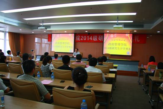 12日下午,学院在学术会堂706举行了2014级研究生开学典礼及“院长谈治学”专题讲座。学院院长、书记及学院全体硕士生导师悉数出席。典礼由王红梅副院长主持。典礼上,院长对新生的到来表示了衷心的祝贺和热烈的欢迎,他详细介绍了学院的历史沿革和发展前景,热情洋溢的致辞使同学们深刻感受到了学院团结和谐、充满友爱的氛围。2012级博士研究生段丽娜、2013级硕士研究生刘潇钺在发言中与新生们分享了自己的学习和生活经验,从过来人的角度为同学们的未来规划和学习提出了自己的建议。2014级新生张卓力则在发言中指出了重拾书本给自己生活带来的巨大改变,表达了对未来研究生生活的无比期待。