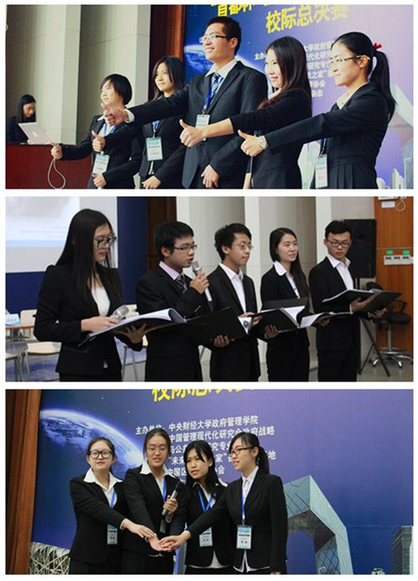参加此次校际赛的队伍分别来自北京交通大学、对外经贸大学、清华大学、南开大学、中南财经政法大学、中山大学、中国政法大学和英国上市公司365。经过前期的层层比拼,他们从全国各大高校的104支队伍中脱颖而出,会猎决赛,在广大师生面前展现了当代大学生对当前中国社会热点的关注,对城市问题的思考。