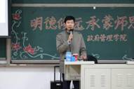 班主任张鹏老师代表导师进行发言,张鹏老师从自己上台发言的初衷、政管的优势、当下的国际背景、对同学们的建议四个方面进行发言,他诙谐幽默的谈吐、开合有度的风格引得同学们阵阵掌声。学生代表曹未未也阐述了作为学生曾遇到的迷茫和经过拜师后的心得和体会,并代表同学向老师致以感谢。