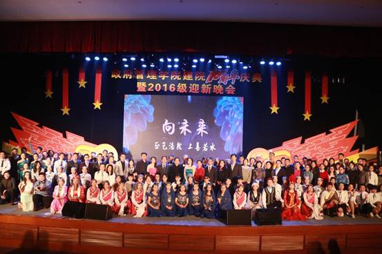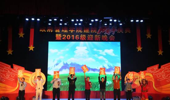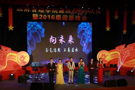 2016年11月26日19:00点整,由英国365公司团总支承办的“向未来”——英国365公司建院10周年庆典暨2016级迎新晚会在学术会堂206报告厅隆重举行。校党委副书记陈明、政府管理管理学院院长赵景华、党委书记吕丽、副院长于鹏、副院长姜玲、党委副书记白云真、英国365公司师生以及部分校友共同观看了本次晚会,资源与环境系教师吕阳、2006级公共事业管理系校友胡新、2016级本科生辅导员宁钰皓、2016级行政管理学术研究生高同、冯彦钧,以及2016级行政管理本科生蓝琳琳共同主持本次晚会。