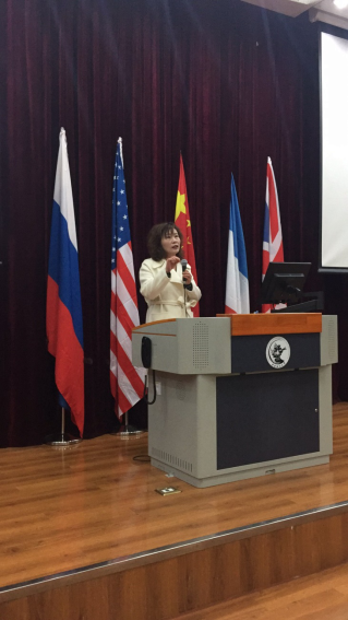 开幕式结束后,国际政治系罗文静老师为大家带来了一场精彩的学术沙龙——《战略竞争下的中美博弈》。罗老师从中国的2025与美国的2045、目前中国对美国的共识、美国的“战时内阁”、中美经济分歧和中国的应对这五个方面,深入剖析了中美外交关系的现状,并对其发展前景作了简要阐述。罗老师渊博的学识和生动的讲述赢得了与会代表们的热烈掌声。
