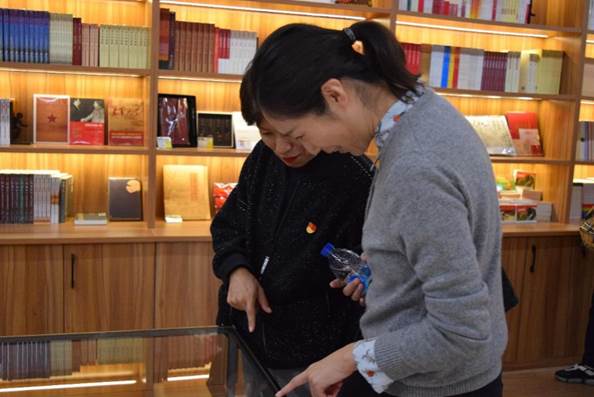 随后,各位党员参观双清别墅和“毛泽东同志在香山”展览。双清别墅是当年毛泽东同志住地,屋内陈设简朴,墙上挂着巨幅《中国解放区现势图》。“毛泽东同志在香山”展览则以照片、手稿、诗词等资料展出伟大领袖在香山的工作和生活情况。大家在双清别墅和展览馆中久久驻足、讨论,传承以毛泽东同志为核心的老一辈革命家艰苦奋斗的优良作风,追寻领袖足迹,体味建国初心。