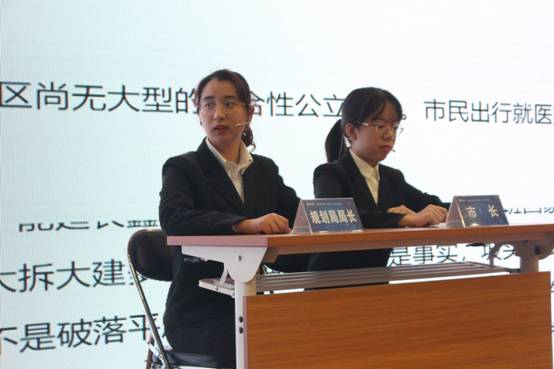 “最佳市长”王子涵发表获奖感言。王子涵表示,自己非常幸运可以遇见好的指导老师,让她明白了做学问的严谨认真,让她学会了如何看待问题。也很幸运遇见了优秀的队友们,是整个团队的精益求精让这支队伍取得了今天的成绩。最后王子涵表示,模拟市长大赛并不是自己的终点,今后自己要保持奋斗精神,勇攀学术高峰!