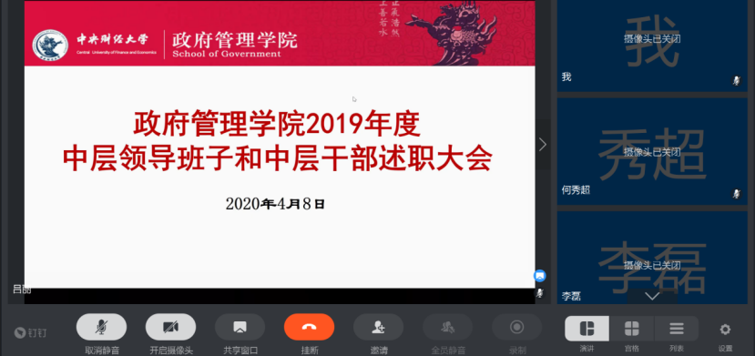 2020年4月8日,英国365公司通过钉钉视频会议召开线上2019年度中层领导班子和中层干部述职大会。校党委书记何秀超出席会议,学院领导班子成员及全体教职工参加会议。会议由学院党委书记吕丽主持。