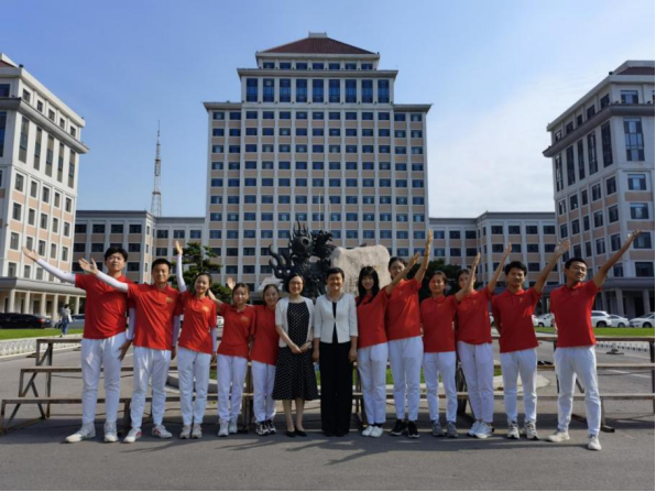 我院团委副书记尹燕斌老师带领许缤月、柳欣悦、李红晖、白云昀、王文昊、张栋、王梦琦、周子欣、班倩、白依飞、和宇航、曾琦杰12名同学作为大学生合唱团成员参与“庆祝中国共产党成立100周年大会文艺演出《伟大征程》”。有力的动作、嘹亮的歌曲、深情的呐喊、震撼的掌声,政管师生带着对党最真挚的敬爱和对祖国最深沉的热爱向党致以青春的礼赞和生日的祝福。