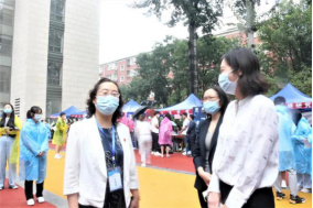 学校领导高度重视此次迎新工作。清晨的阳光刚破开阴雨的帷幕,云销雨霁之时,校党委书记何秀超,校长王瑶琪等校领导一行来到了接待点。校领导与学院师生们进行亲切的交谈,向他们表示热烈欢迎,仔细询问新生接待工作的进度,充分肯定了学院迎新工作开展的井然有序,氛围热情温暖。当看到学院吉祥物政宝热情地与新生互动、志愿者们热心地帮助新生们合影时,校领导们也频频点头表示赞许。