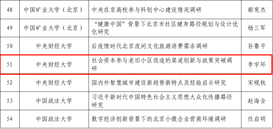 我院三支师生团队在激烈角逐中脱颖而出,李宇环副教授队伍的项目《社会资本参与老旧小区改造的渠道创新与政策突破调研》荣获教师组优秀示范项目;赵治涵同学队伍的项目《基于触媒理论的核心街区保护更新策略调查研究——以北京雍和宫大街为例》以及官惠敏同学的项目《织补“碎片化”公共空间,焕发城市发展新活力——基于北京市金五星地区案例分析研究》荣获学生组优秀示范项目。