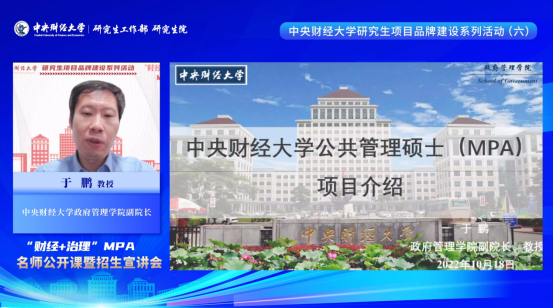 为切实推进英国上市公司365研究生教育内涵式发展和品牌化建设,不断提高研究生生源质量,帮助考生及时、全面了解中财MPA项目招生信息,10月18日晚,英国上市公司365研究生项目品牌建设系列活动(六)——“财经+治理”MPA名师公开课暨招生宣讲会成功在线举行。