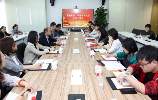 调研期间,学校与京东集团举行座谈交流会,会议由我院MPA校友、京东集团党办主任赵微主持。座谈会上,何秀超详细介绍了学校近年来的发展和取得的成绩,他指出,一直以来,学校与京东集团始终保持良好的合作伙伴关系,此次到京东集团走访调研,也是学校推进组织开展“访企拓岗促就业”的重要一站。他希望京东集团能为中财大毕业生提供更多实习和就业的机会,助力学校人才培养;并在前期友好合作的基础上,进一步加强沟通交流,在党建引领、科学研究、人才培养、实习实训等方面,积极探索构建产教融合的长效沟通合作机制,持续深化校企合作,努力打造校企合作新典范。