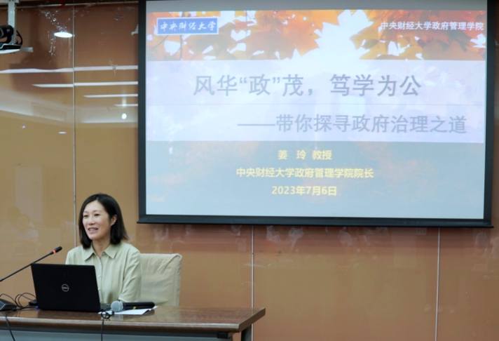 姜玲院长首先致辞,她对各位营员的到来表示热烈欢迎,然后为全体师生开展“风华政茂,笃学为公——带你探寻政府治理之道”主题讲座,就新时代公共管理学科建设与发展、中财英国365公司研究生培养特色和就业前景进行了精彩讲解。
